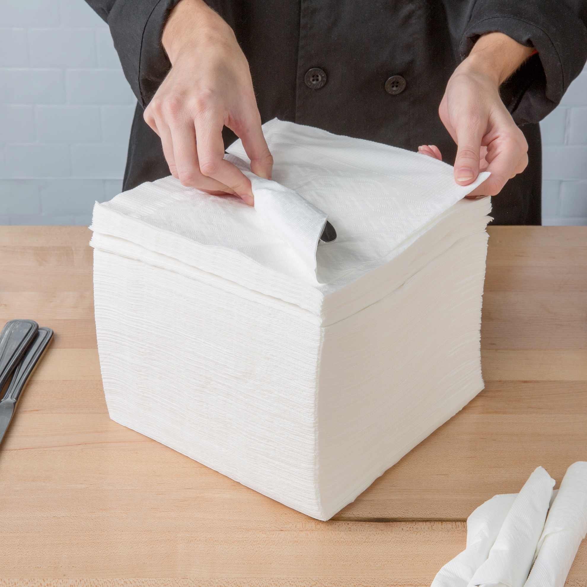 Economical, single-ply design ensures cost-effectiveness for value-oriented full-service restaurants. 1/4-fold format is perfect for a rolled silverware presentation. Strong and absorbent with new emboss design. Material(s): Paper; Color(s): White; Width: 16"; Depth: 16".