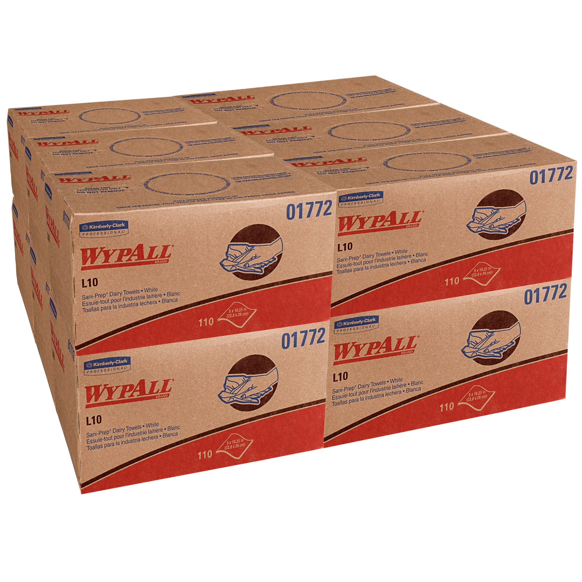 L10 SANI-PREP Dairy Towels,POP-UP Box, 1Ply, 10 1/2x10 1/4, 110/Pk, 18 Pk/Carton